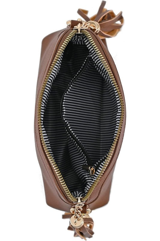 Carry your essentials in style with this adorable tassel crossbody bag! Featuring a fun tassel zipper closure and a sleek chain strap, it's the perfect pint-sized companion for your on-the-go adventures. The adjustable shoulder strap lets you customize the fit, while the interior zipper pocket keeps your valuables secure and organized. Whether you're heading to brunch, a night out, or just running errands, this charming bag adds a playful pop to any outfit!