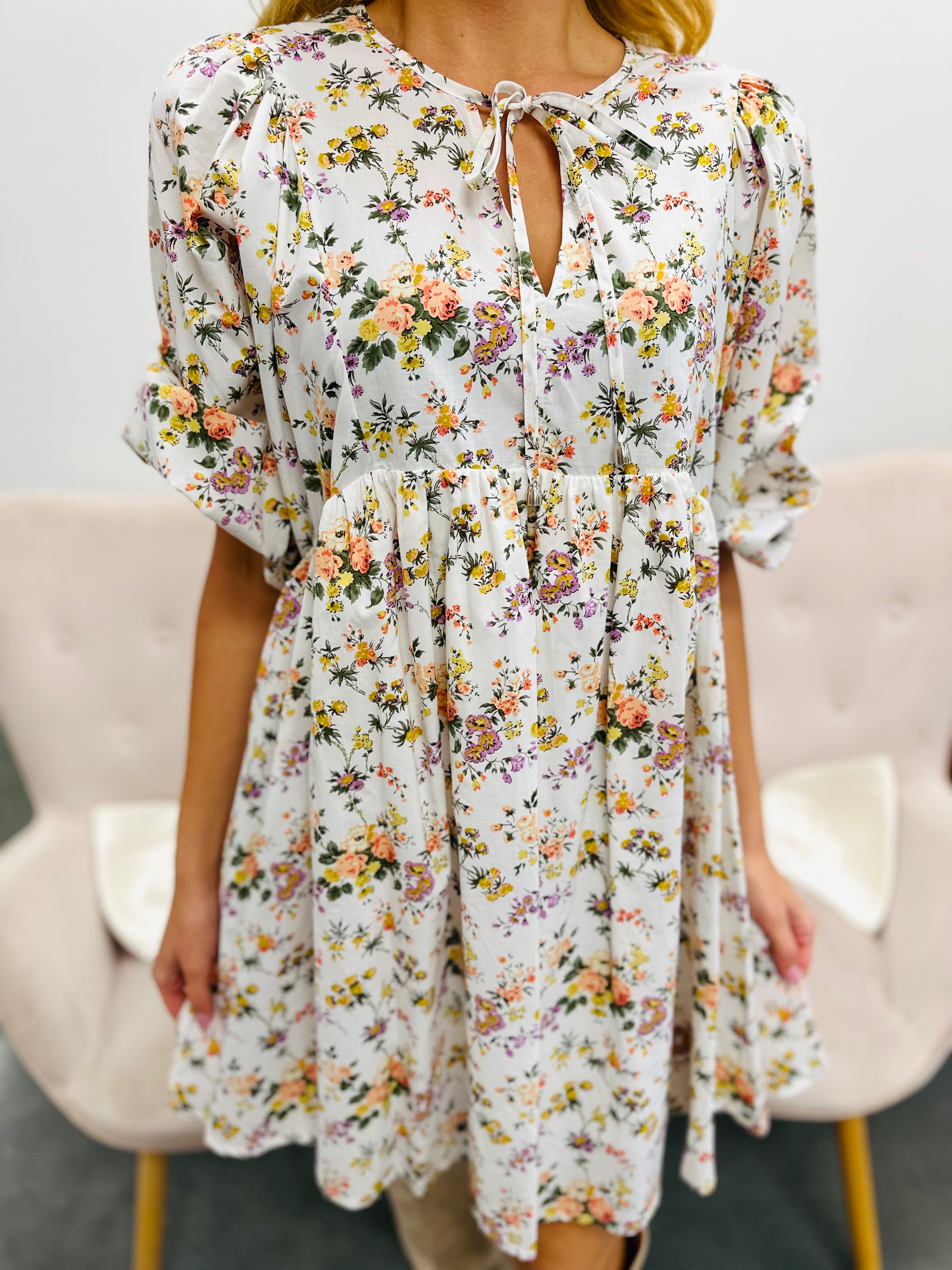 Get ready to turn heads in our mock neck long sleeve mini dress! With a tiered design and self-tie at the back neck, this dress adds a touch of elegance to your wardrobe. Button closures at the sleeves and side pockets make it practical yet stylish. Lined and lightweight, it's perfect for any occasion. Who says fashion can't be functional?
