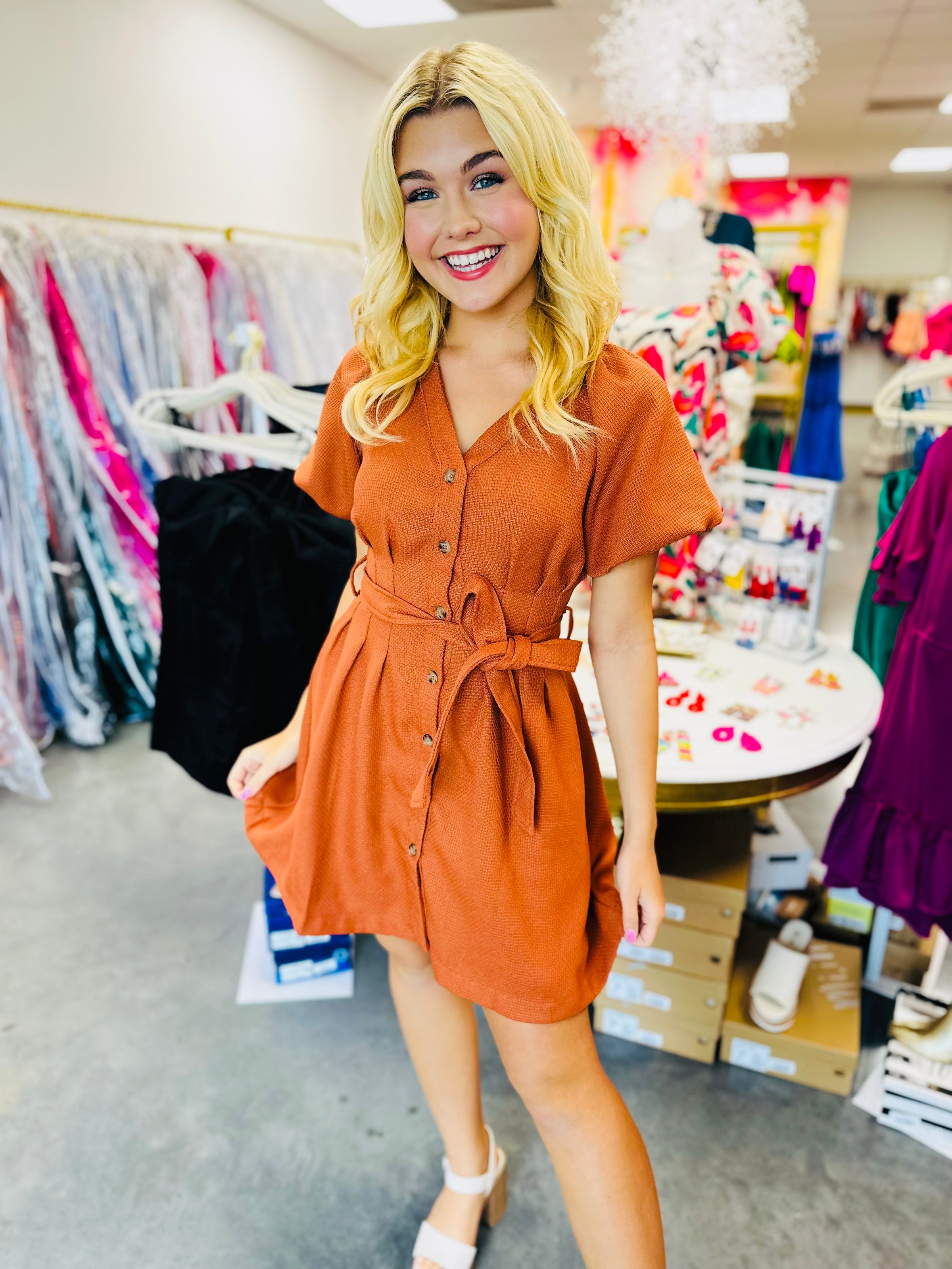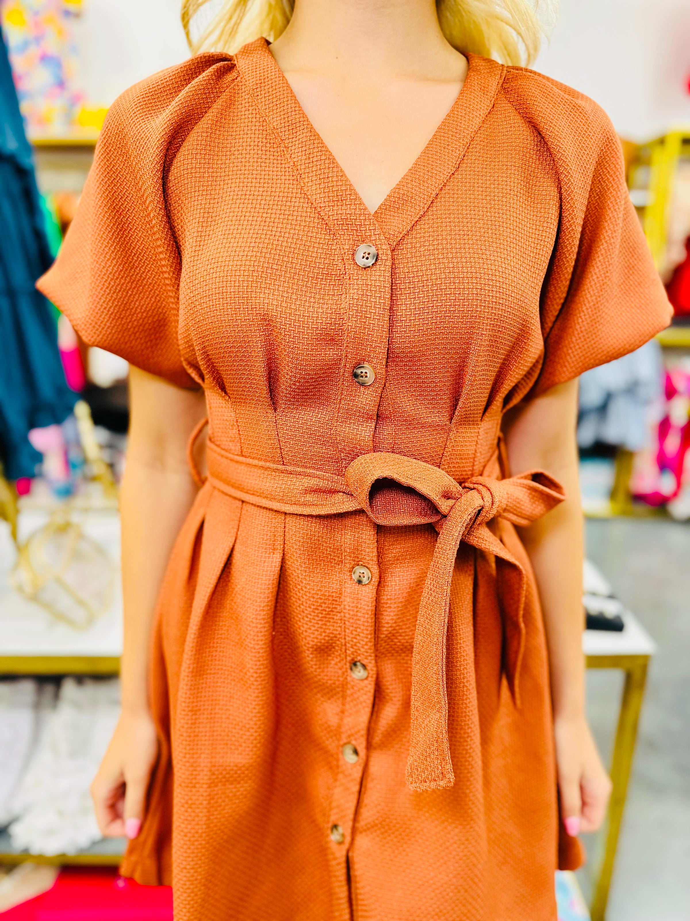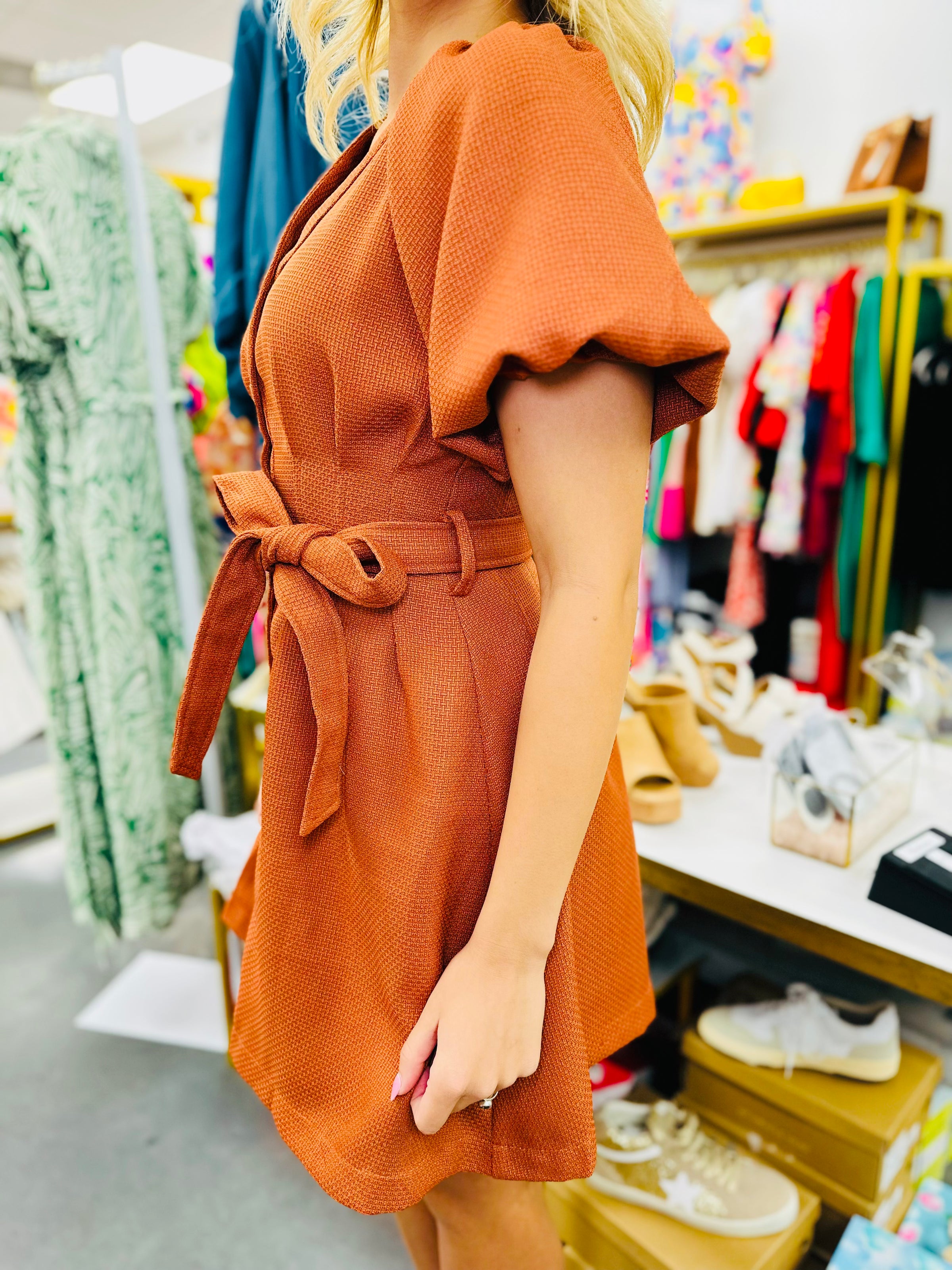 Capture effortless elegance and timeless sophistication in this textured bubble sleeve button up mini dress. Harmoniously combining a tailored cut silhouette, self tie at the waist, and lightweighed fabrication with a subtly textured feel, it's sure to make a statement at any special occasion. An impeccably stylish and exquisitely tailored design for those who yearn for a unique and exclusive look.
