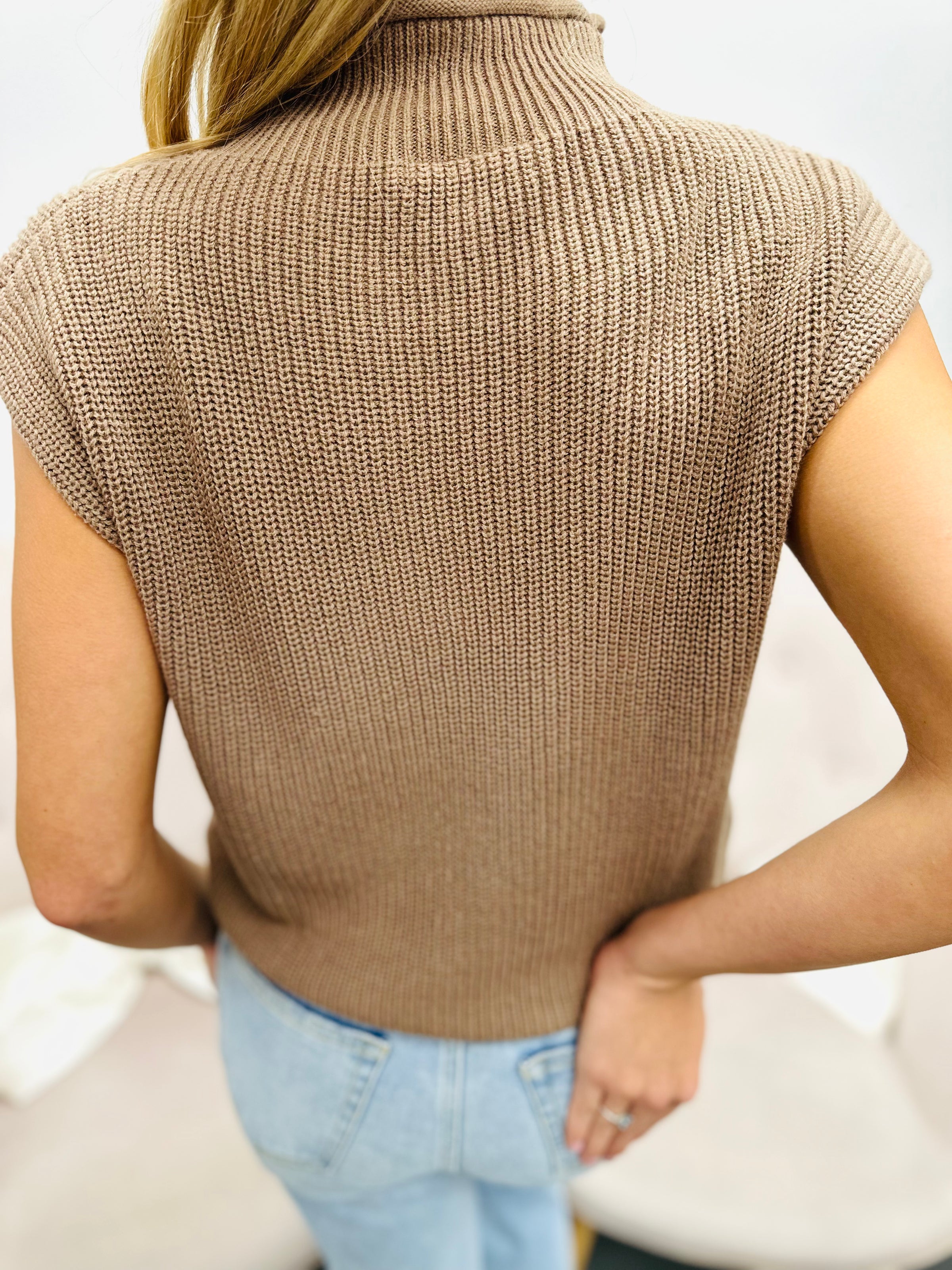Elevate your outfit with this fun and flirty mock neck sleeveless sweater. Its cozy neckline keeps you warm, while the sleeveless cut lets you show off your arms and layer with ease. Perfect for playful styling, it adds a pop of personality to any look without weighing you down.
