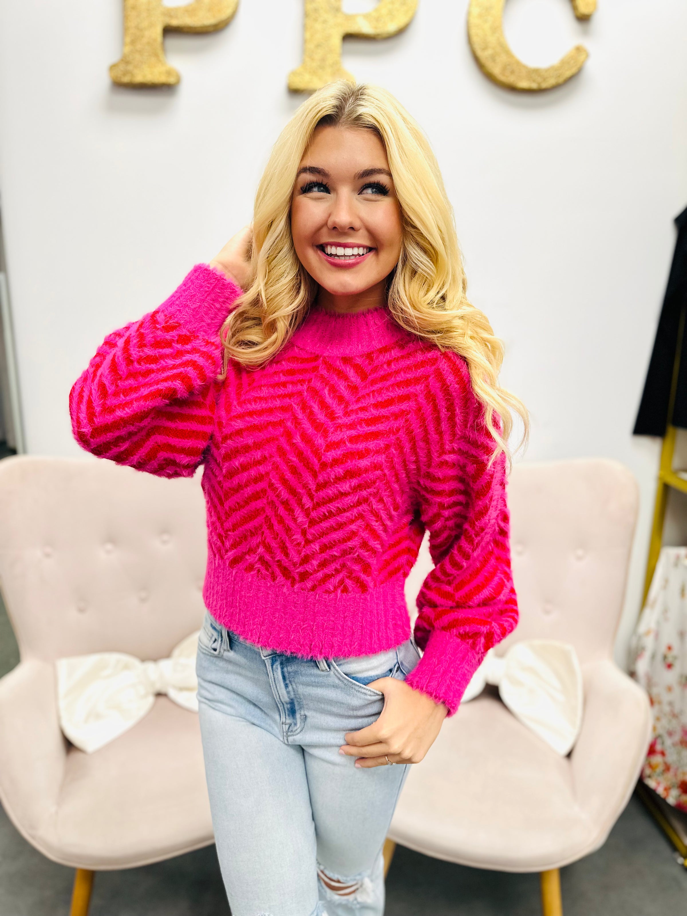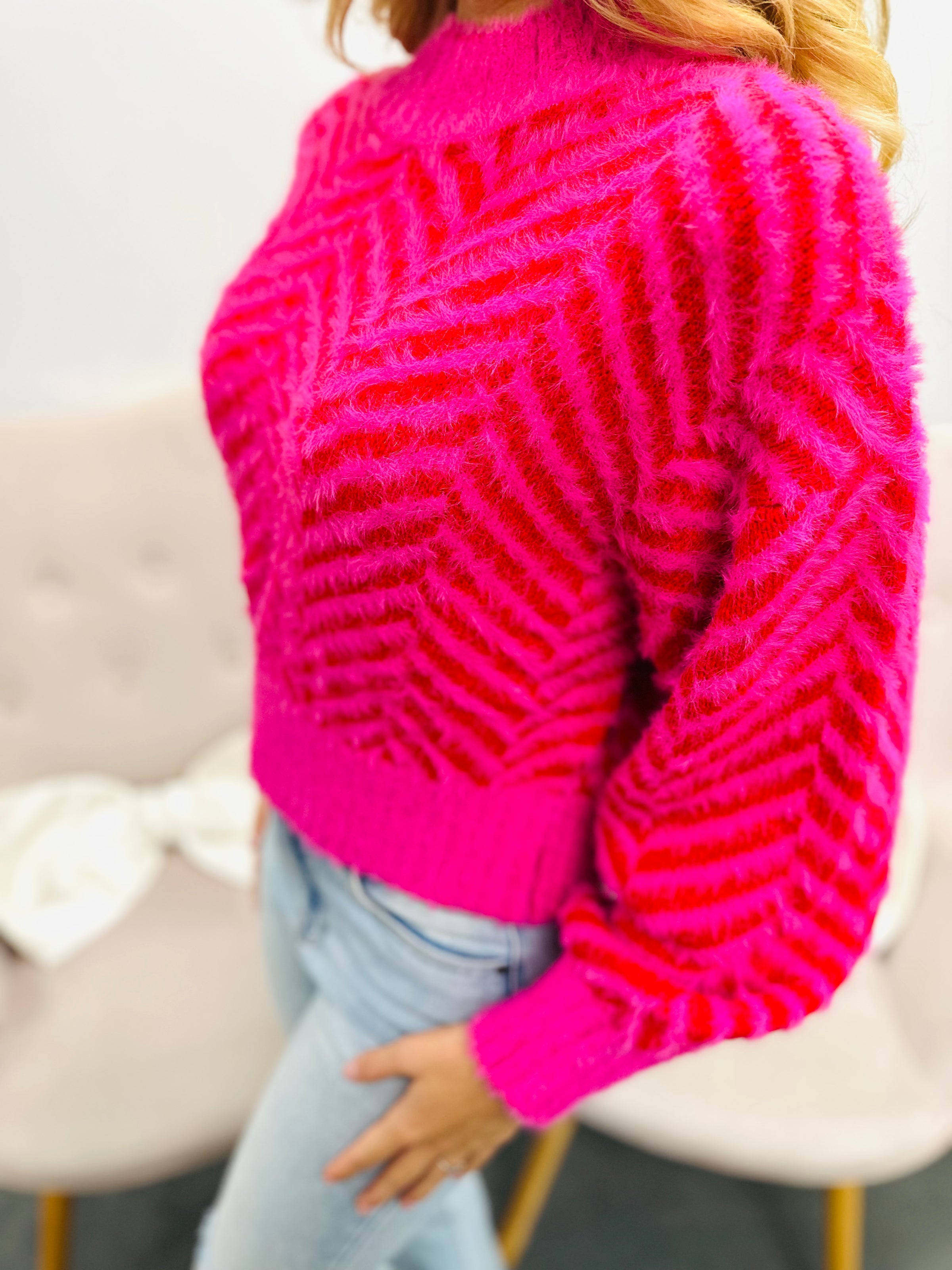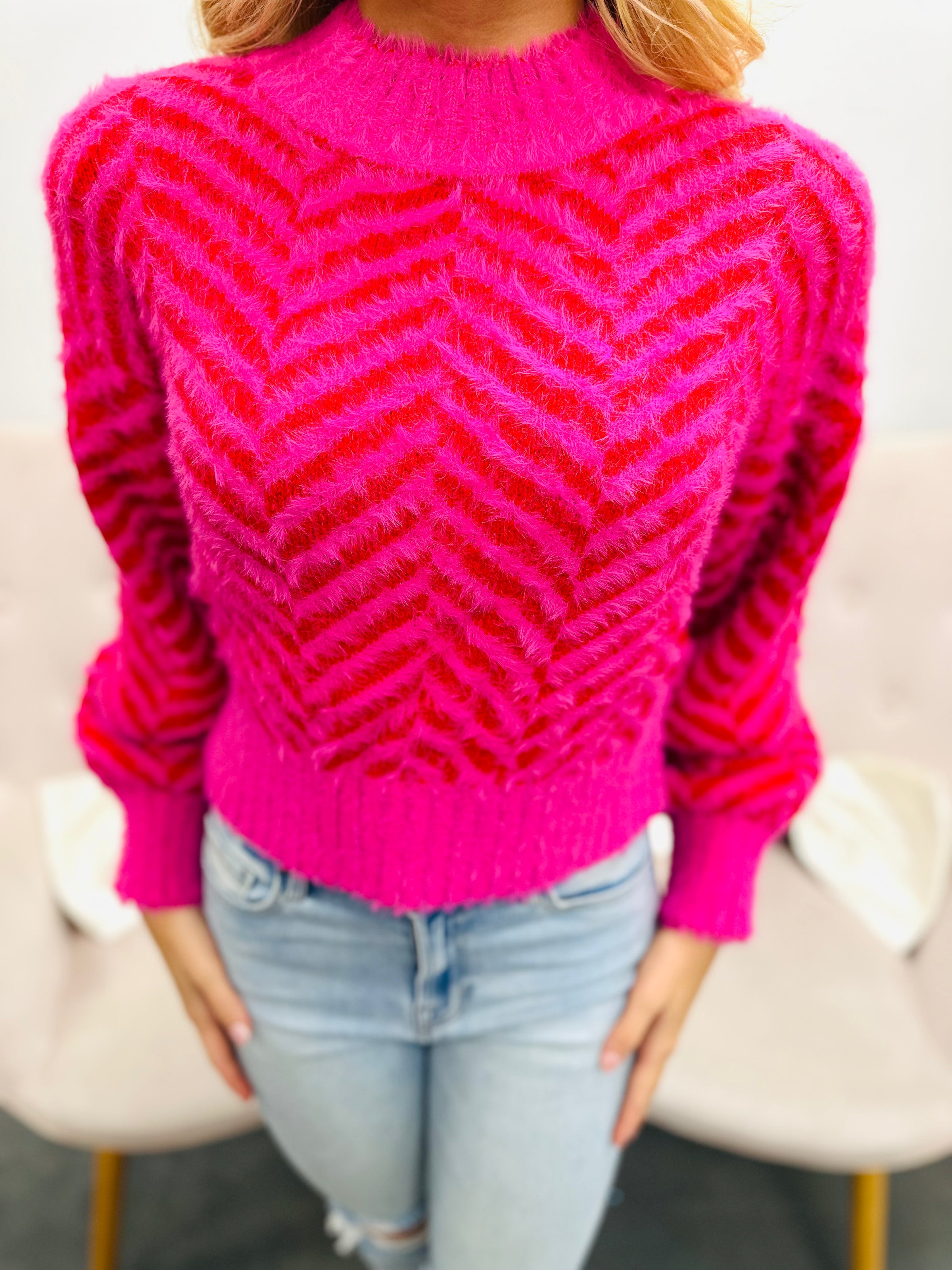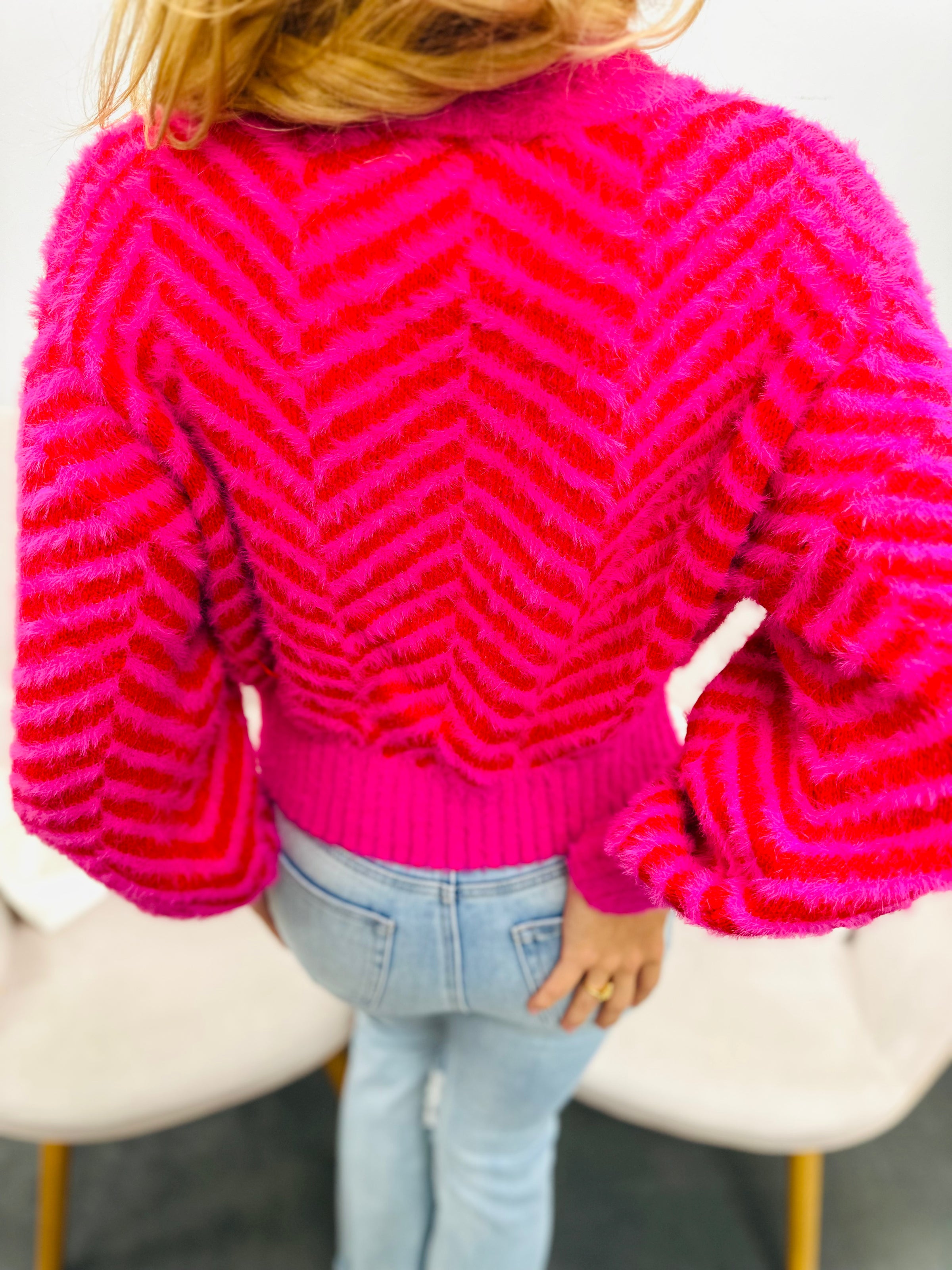 Embrace comfort and warmth with this fuzzy striped sweater. Its soft, cozy fabric keeps you snug on cooler days while the classic striped design adds a touch of effortless style. Perfect for layering or wearing on its own, this sweater supports your need for both comfort and confidence throughout the day.