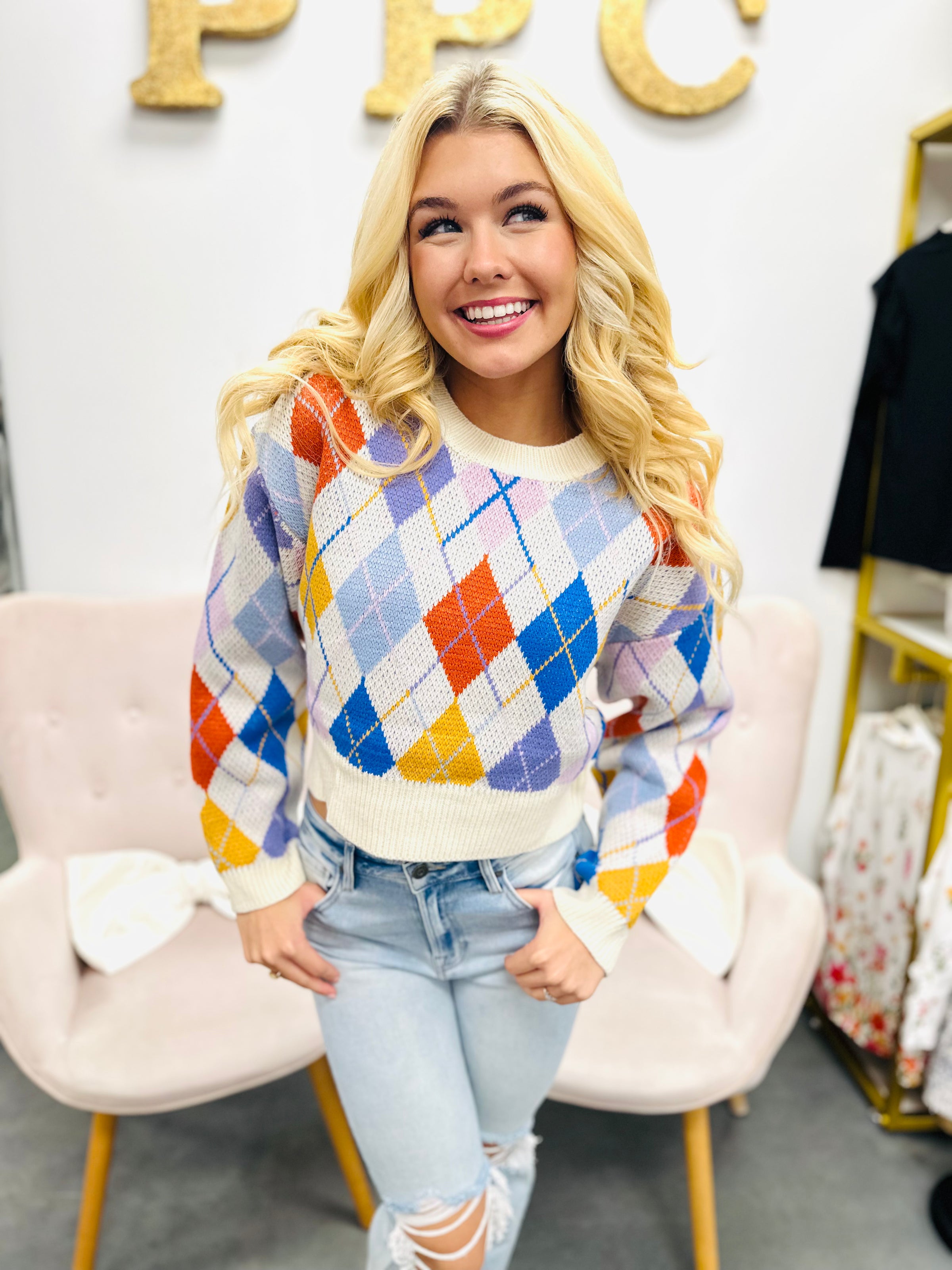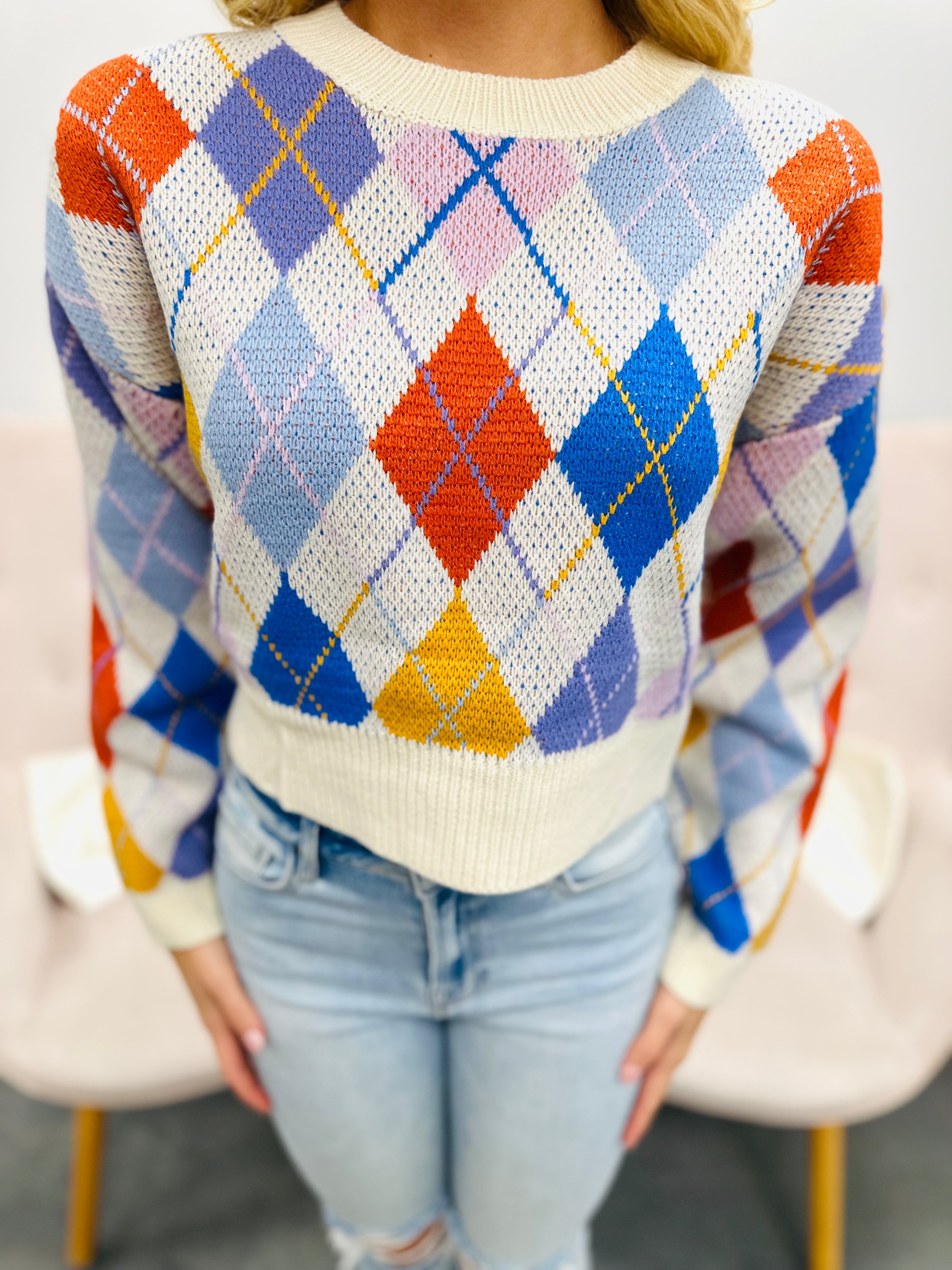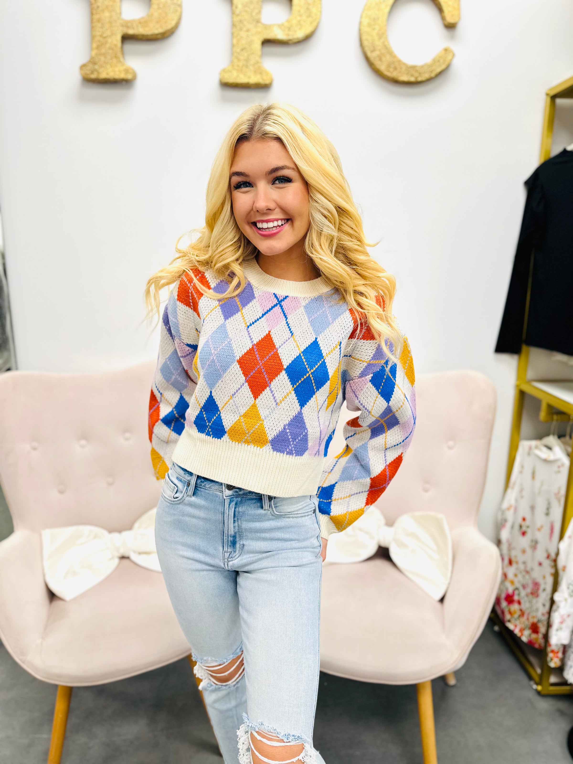 Embrace warmth and style with this multi-color retro-inspired sweater. Its soft, comfortable fabric keeps you cozy, while the vibrant colors bring a cheerful, nostalgic vibe to your look. Ideal for adding a unique touch to casual outfits, this sweater supports your confidence and comfort throughout the day.