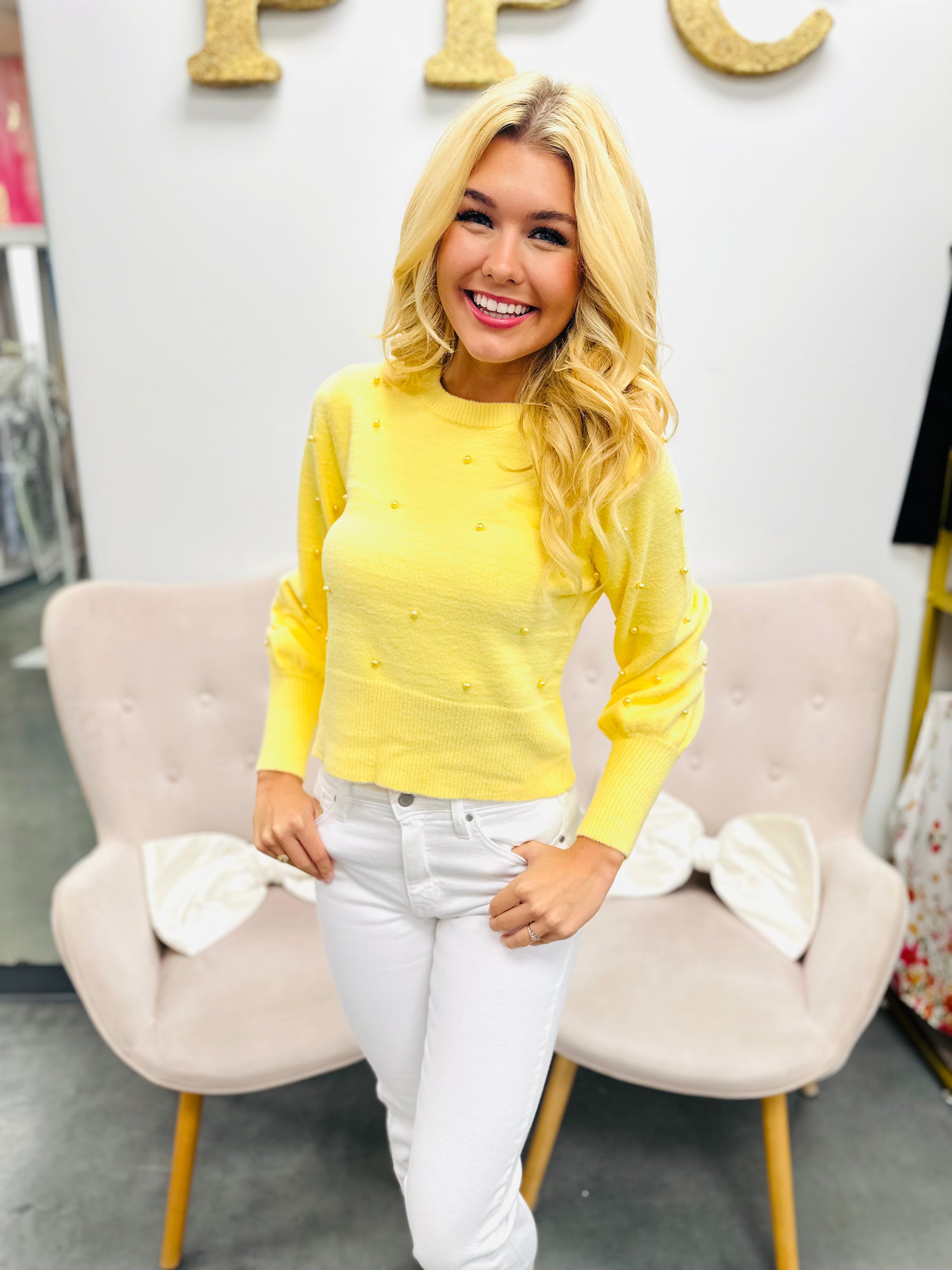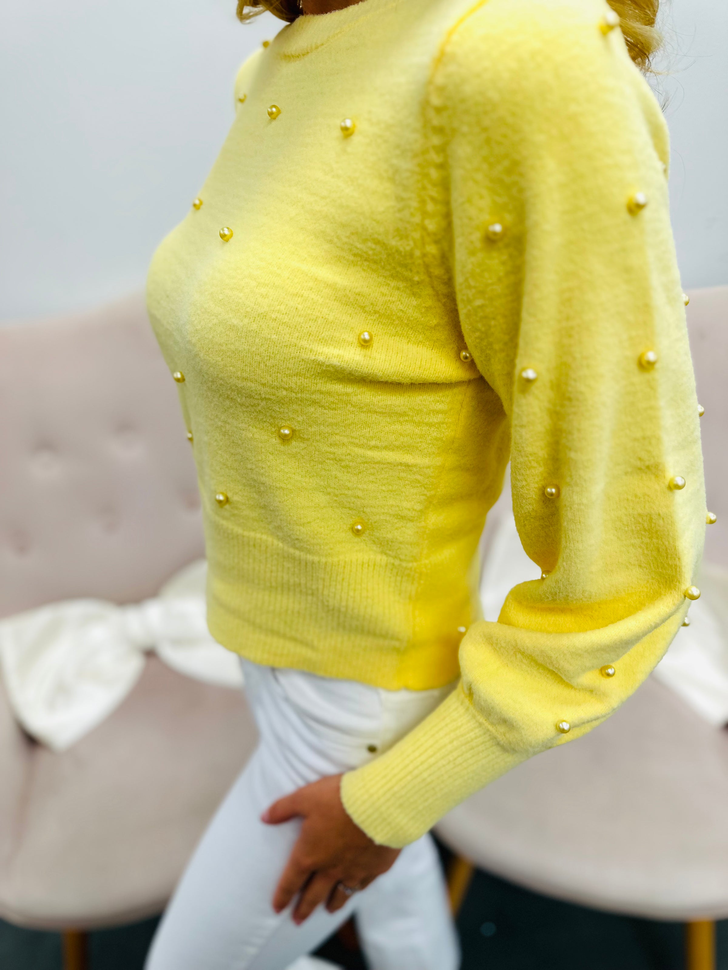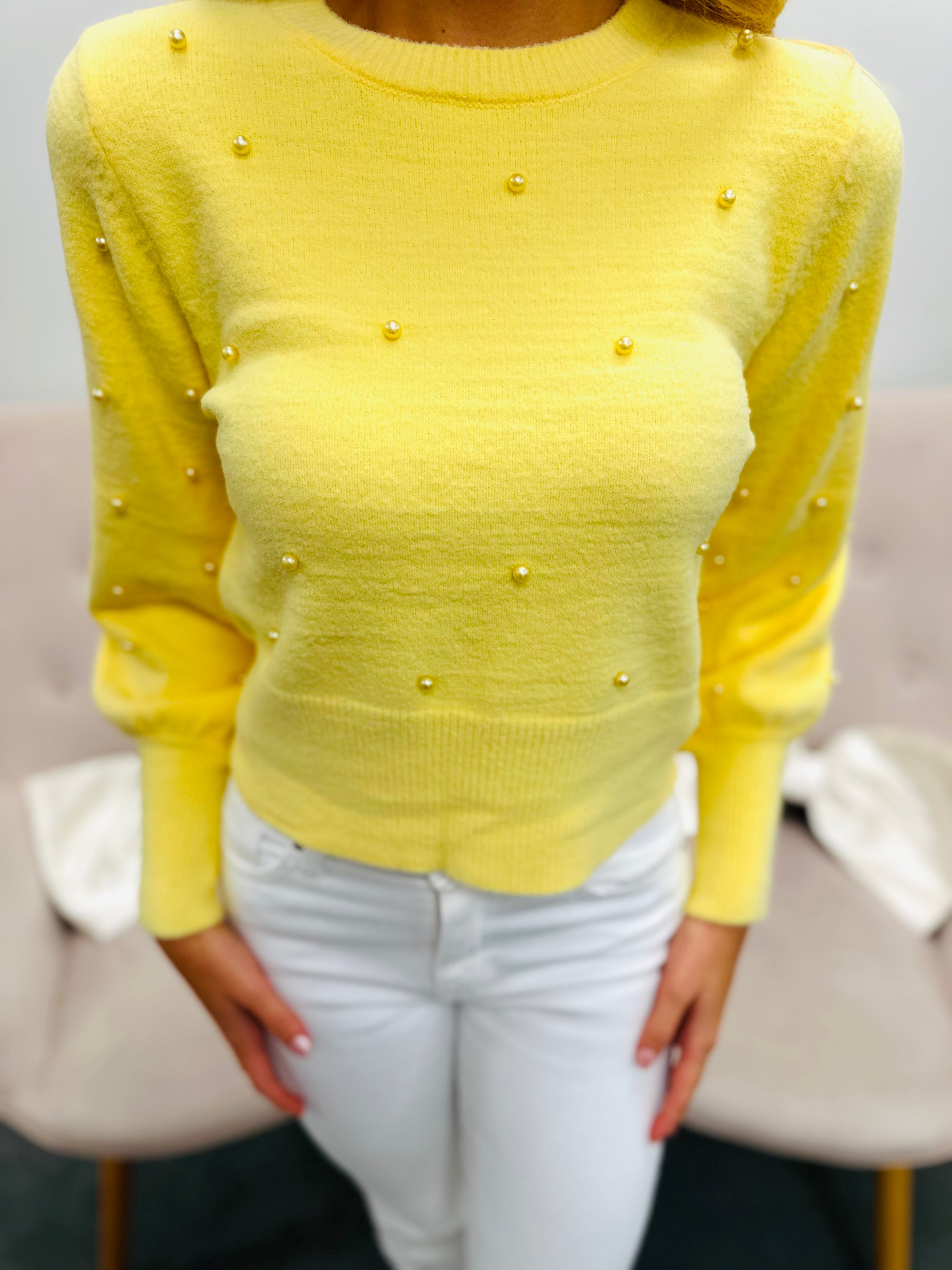This puff long sleeve sweater adorned with pearls offers a cozy yet elegant look. The soft fabric and voluminous sleeves provide comfort and a flattering fit, while the pearl accents add a subtle, sophisticated detail. Perfect for staying warm with style, this sweater supports your confidence in any setting.