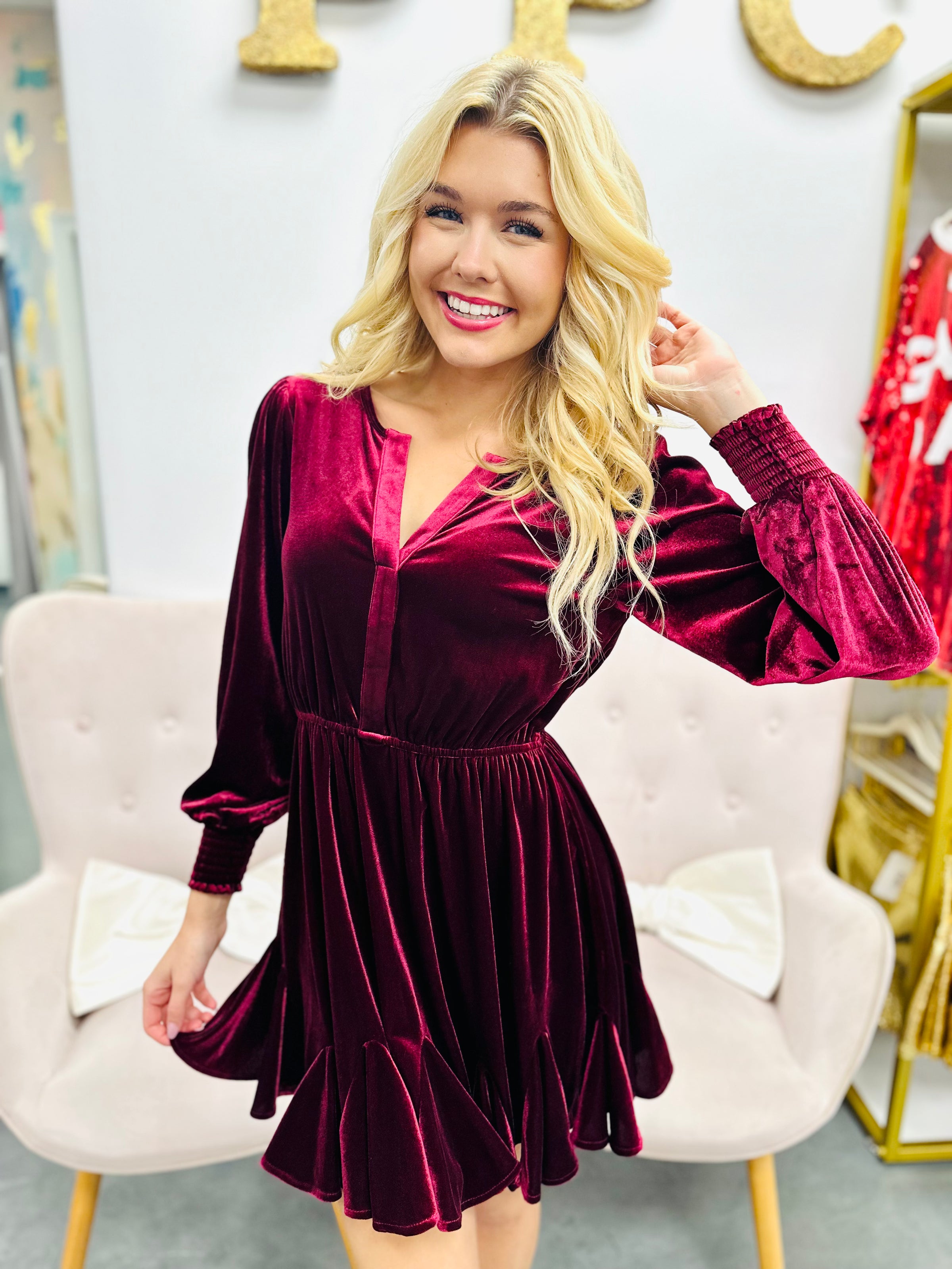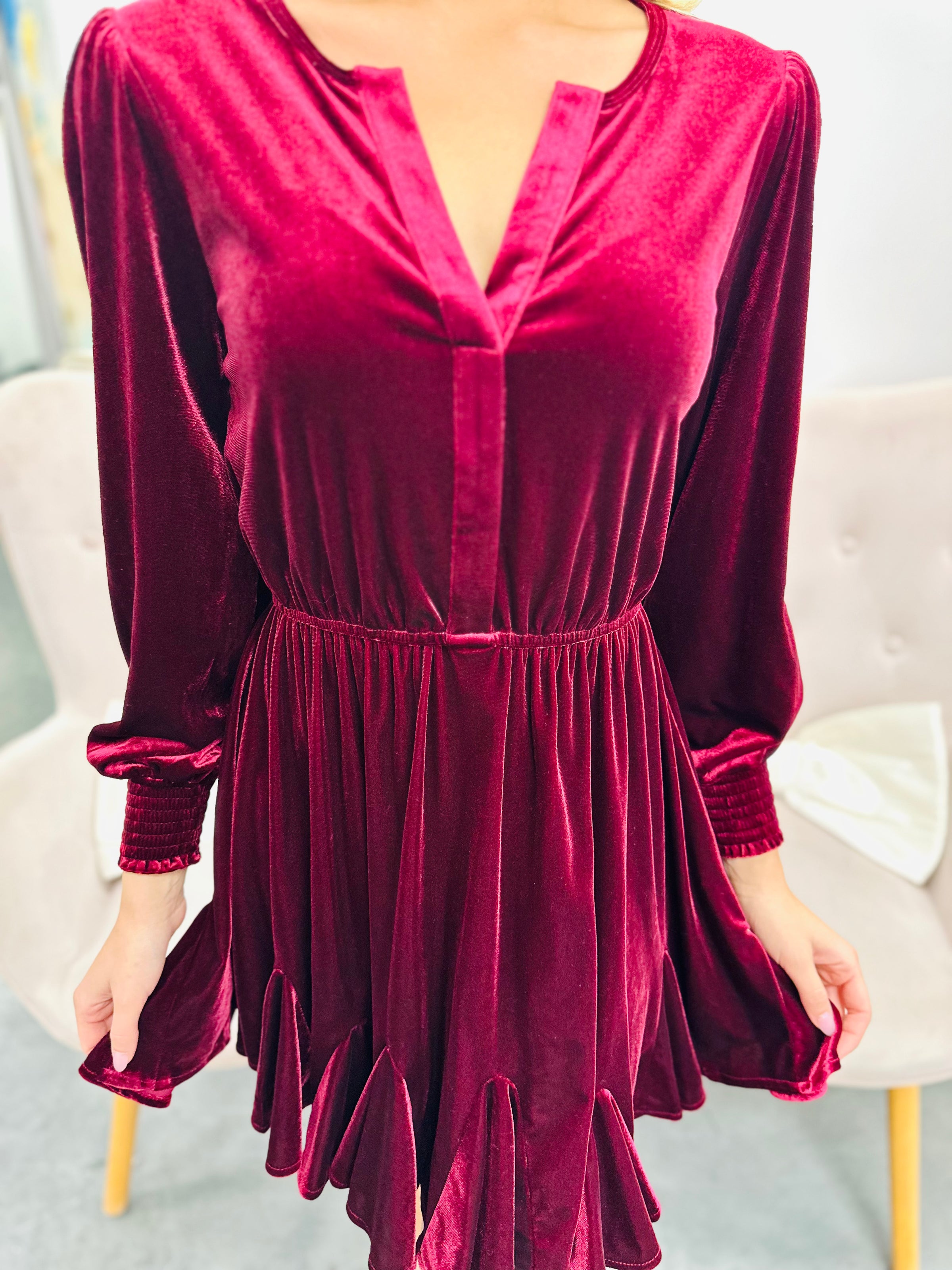 Be the belle of the ball in our sumptuous Velvet Split Collar Godet Mini Dress. This elegant garment features an exquisitely constructed split velvet collar and short godet sleeves, all tailored to perfection in a flattering slim-fit silhouette. Enliven your wardrobe and turn heads with this chic, statement-making piece!
