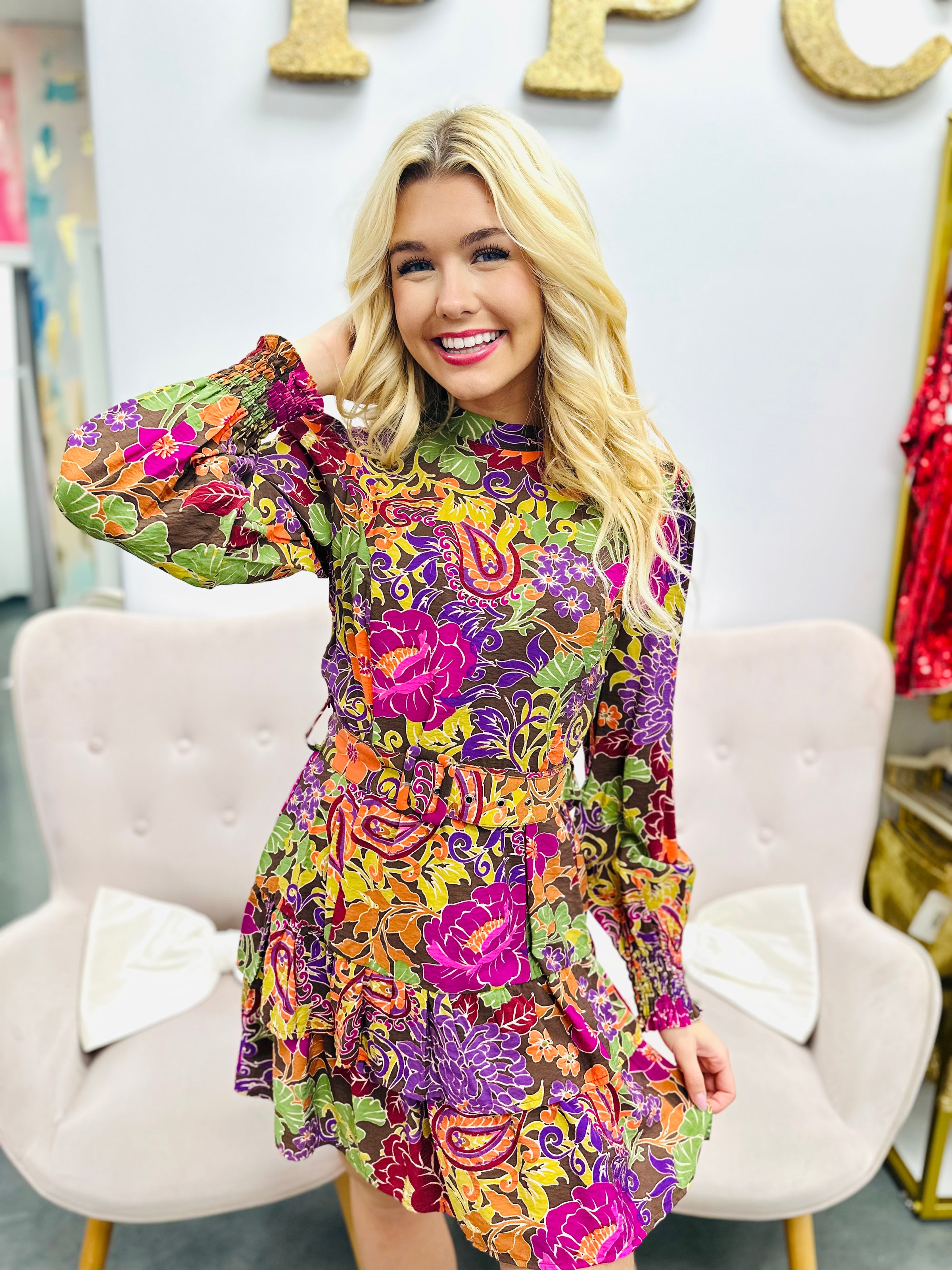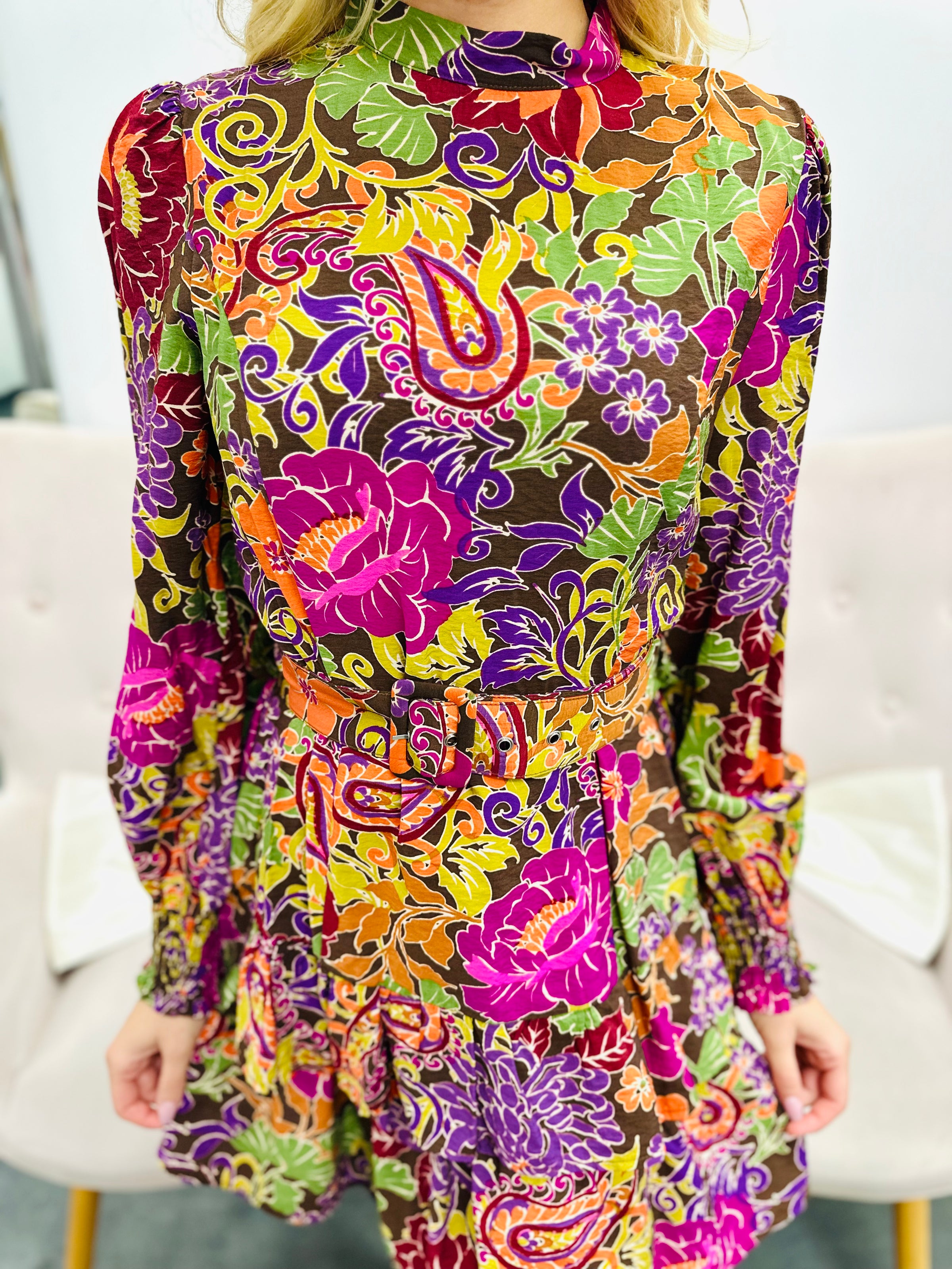 Introduce your wardrobe to modern elegance with our Floral Print Belted Waist Ruffle Hem Dress. Crafted from a soft, lightweight fabric, this dress features a statement floral print with a belt that cinches the waist for flattering definition. The classic silhouette is finished with a ruffle hemline that adds a sense of luxury and sophistication.