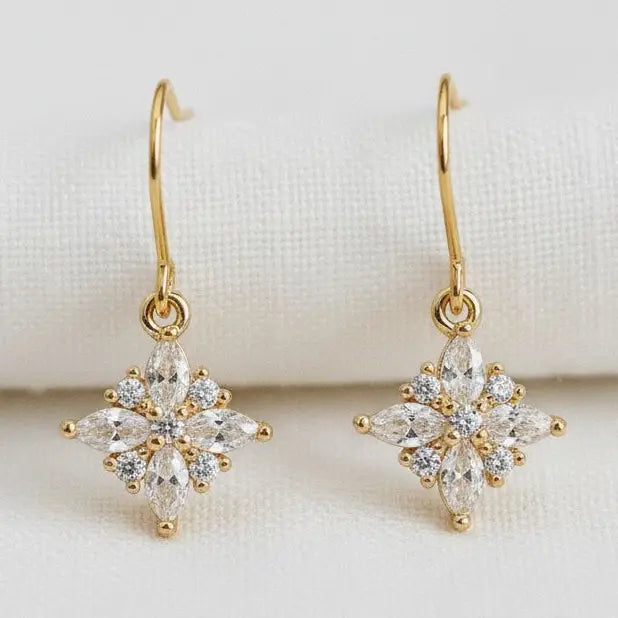 Elevate your style with these stunning geometric star drop earrings. Perfect for any occasion, these earrings add a touch of elegance to your outfit.