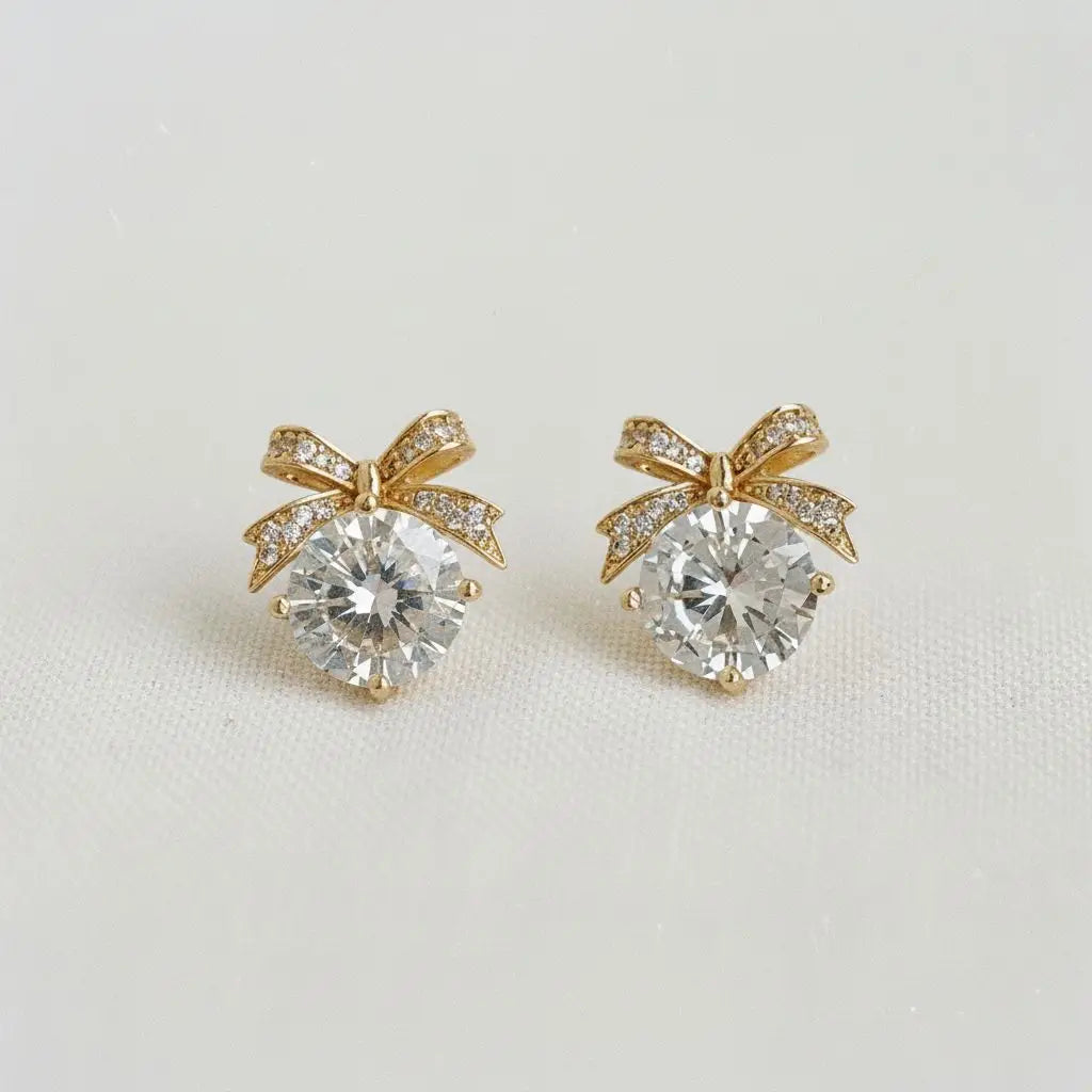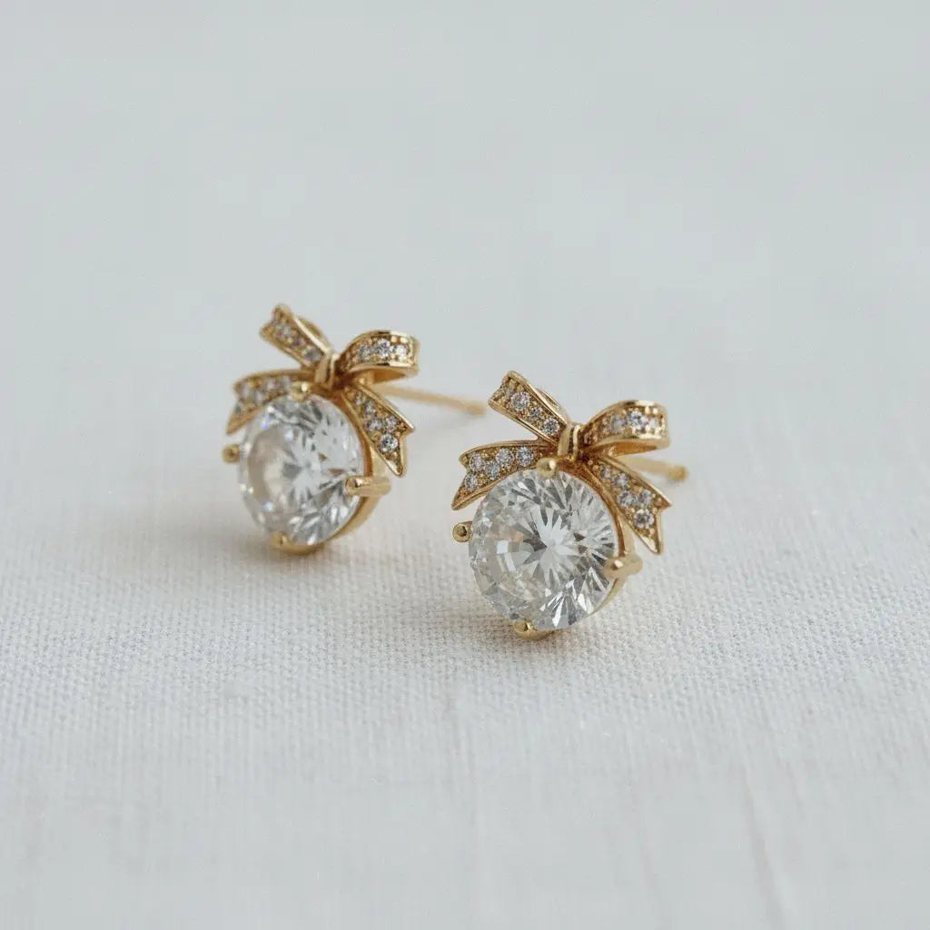 Charming bow stud earrings with sparkling cubic zirconia. These vintage-inspired beauties add a touch of French elegance and playful sophistication to any outfit..