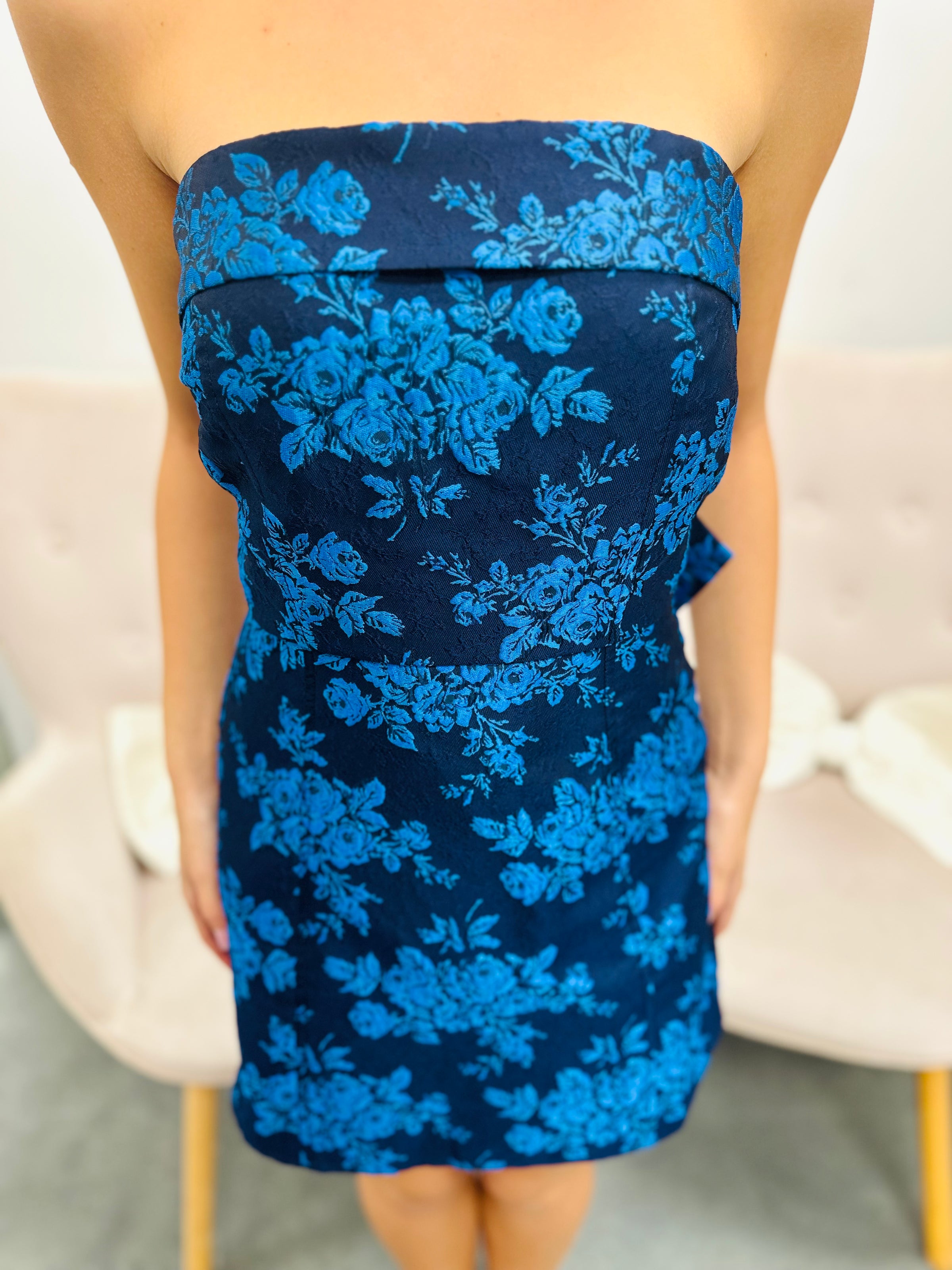 This strapless floral jacquard dress features a delicate pattern that adds a touch of elegance to your wardrobe. Designed with a charming bow at the back, it combines femininity with a flattering fit. Perfect for special occasions or everyday wear, this dress offers comfort and style that will support your confidence wherever you go.